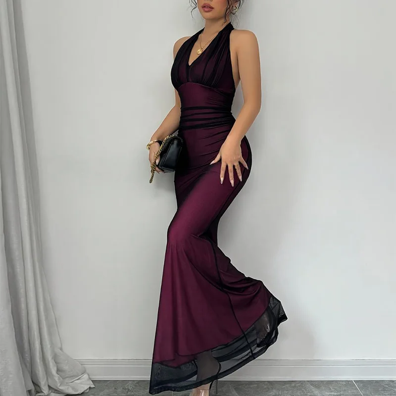 Women’s Elegant Skirt Slim Fit Flared Long Dress Halter Backless Dress Gown Breathable Sexy Maxi Dress