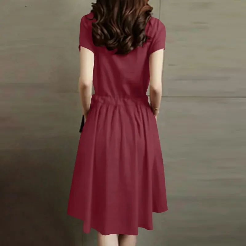 Be the first to review “Women’s O Neck Casual Dress Short Sleeve Polyester A-Line Above Knee Dress Front Buttons Tie Waist Dress”