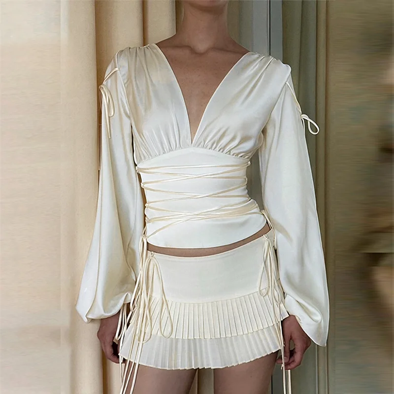 Custom Solid Tie Bow Blouse Shirt for Women Breathable Long Sleeve V Neck Casual Women Shirt