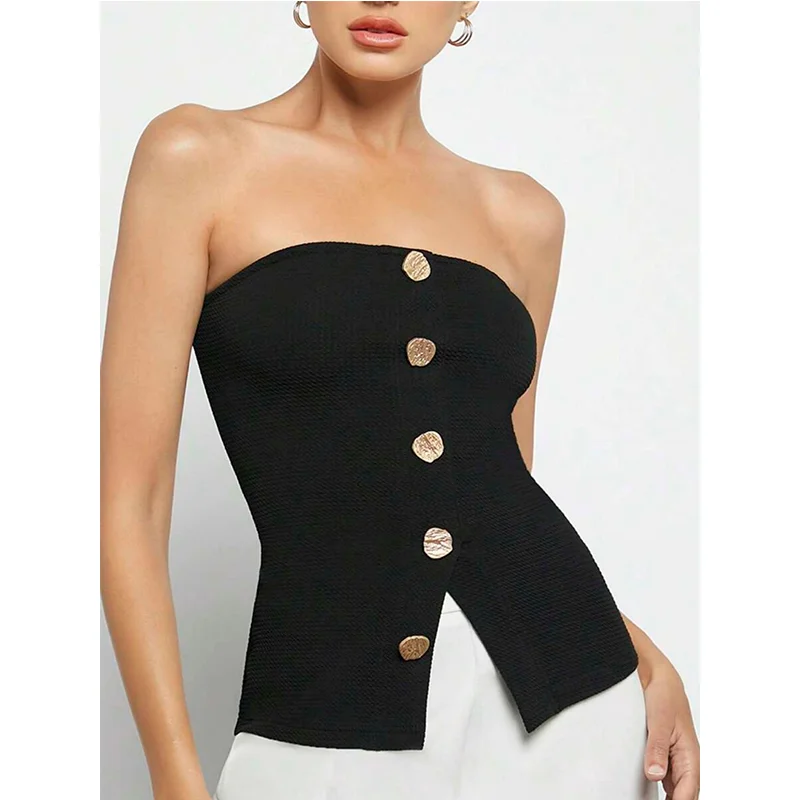 Wholesale Breathable Strapless Crop Top Customize Slim Fit Buttons Women’s Tops